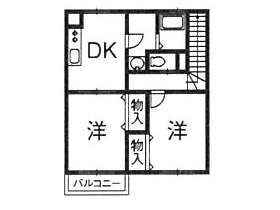 | 詳細間取 | 2DK (洋6帖×2、DK6帖) | ||