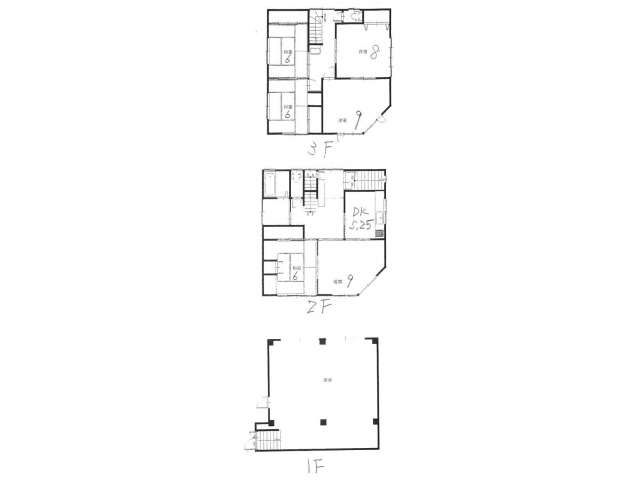 | 詳細間取 | 6DK (2階:和6帖×1、2階:洋9帖×1、3階:和6帖×2、3階:洋8帖×1、3階:洋9帖×1、2階:DK5.25帖) | ||