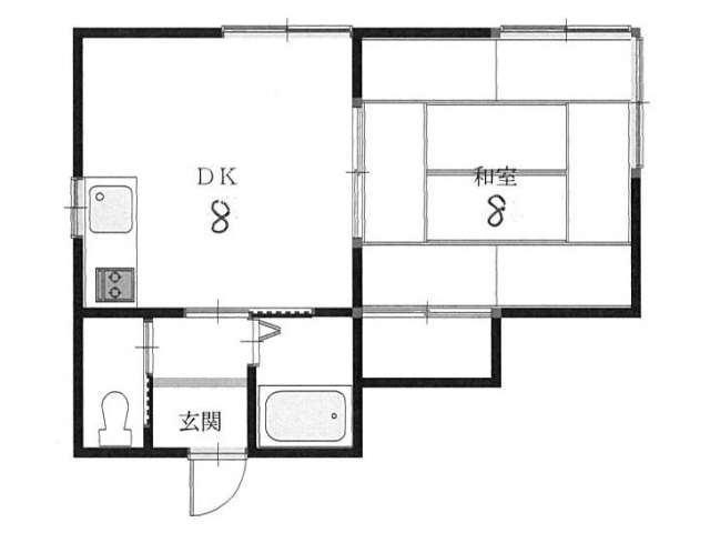 | 詳細間取 | 1DK (和8帖×1、DK8帖) | ||